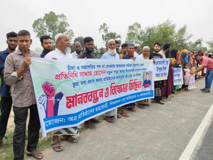 চাঁদা ও সভাপতির পদ না দেওয়ার ঠাকুরগাঁওয়ের নতুনপাড়া স্বতন্ত্র ইবতেদায়ী মাদরাসা সম্পর্কে মিথ্যা সংবাদ প্রকাশের প্রতিবাদে মানববন্ধন করা হয়েছে।